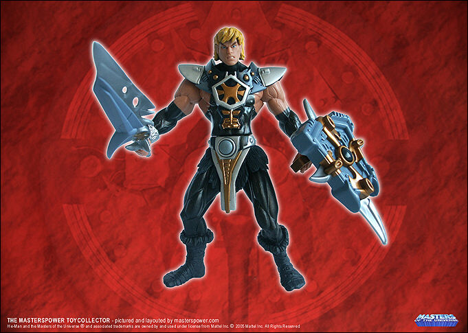 Weitere He-Man Variante in schwarz mit Kampfschild, was Geschütze abfeuern kann, dazu ein neuartiges Powerschwert inkl. Schleudermechanismus sowie einem abnehmbaren Brustpanzer.